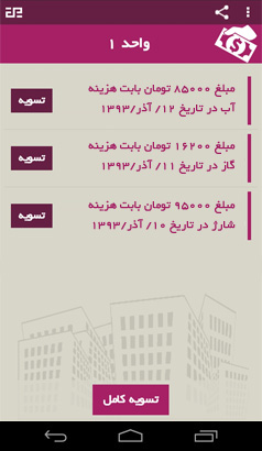 است. این اپلیکیشن علاوه بر حسابداری دقیق مسایل مالی آپارتمان، امکان گرفتن بیلان بر اساس