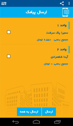 تاریخ برای هر واحد، ارسال پیامک بدهی به واحد ها و ... را دارا می باشد