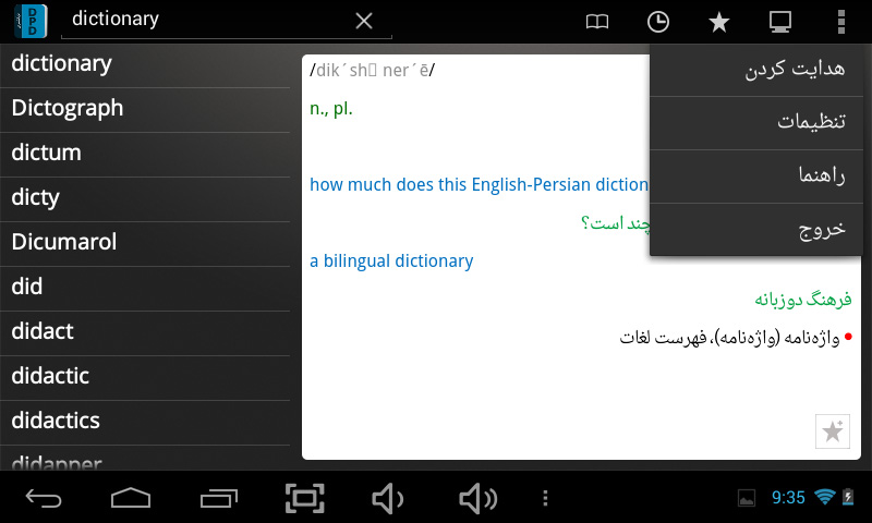 برنامه نویسی شده برای اندروید ورژن 3 به بالا. این دیکشنری با